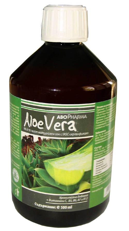Предназначение: Сокът от сърцевината наАлое Вера е безценен дар от боговете, даващ на тялото скъпоценни градивни вещества. Съдържа около 160 известни съставки полезни за организма. Витамините от групаВ допринасят за нормалното фунциониране на нервната система, за нормалното образуване на червени кръвни телца, за нормалния синтез на цистеин. Витамин В6 допринася за регулирането на хормоналната дейност. Витамин В12 участва в процеса на делене на клетките. Пантотеновата киселина допринася за нормалното протичане на метаболизма и производството на енергия, за намаляване на чувството на отпадналост и умора. Биотинът допринася за поддържането на нормалното състояние на косата и кожата, за нормалната функция на имунната система, за защитата на клетките от оксидативен стрес, за образуването на колаген, за нормалната функция на зъбите, костите, хрущяла и кръвоносните съдове. Витамин С увеличава усвояването на желязото.