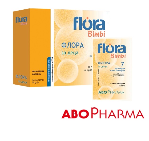 Abopharma Flora Bimbi 7 представлява специална хранителна добавка, съдържаща 7 милиарда живи бактерии, за поддържане на чревната флора на децата.