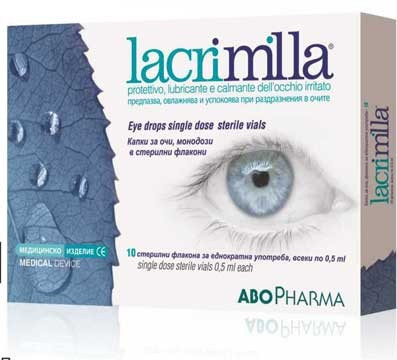 LACRIMILLA /монодози в стерилни флакони/ е специфичен адювант за предпазване и за прилагане при зачервени и уморени очи.