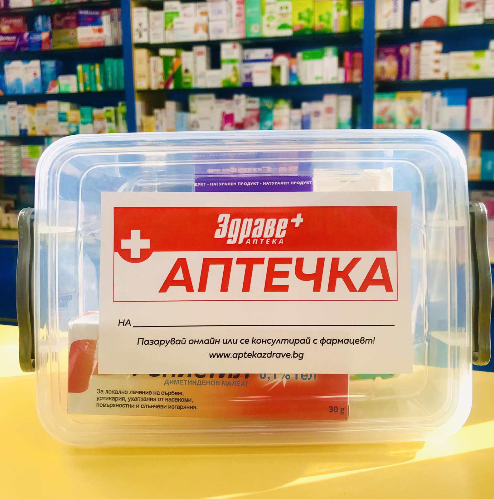Ако имате нужда от други продукти, може да ги добавите към Вашата аптечка, ние ще ги опаковаме прилежно в удобна транспортна кутия, която да е с Вас през цялата почивка и не само!
