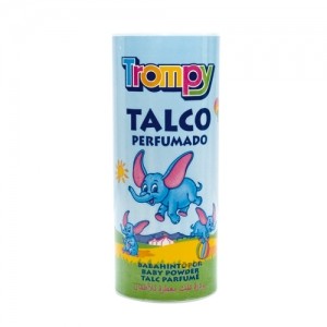 Фин ароматизиран талк на прах "Trompy", изключително нежен към бебешката кожа. Абсорбира влагата и способства за подсушаване на частите от тялото, податливи на потене. Дерматологично тестван.