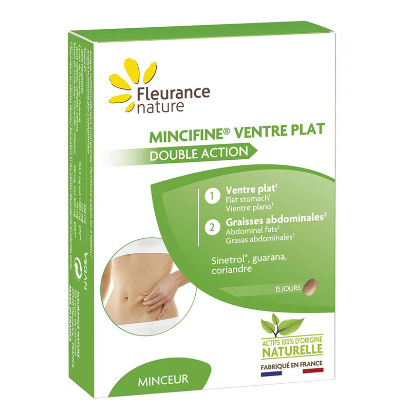 Mincifine® Ventre Plat Double Action е билкова формула, предназначена за борба с коремните мазнини. Създадена от френската компания Fleurance Nature, тази хранителна добавка е разработена с цел да подпомага регулирането на теглото и намаляването на обиколката на талията. Продуктът идва под формата на таблетки, а в опаковка са включени 30 таблетки.