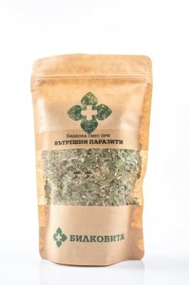 Билкова смес при При вътрешни паразити съдържа левурда, вратига, бял пелин, сладка папрат, нар кора, черен кимион, тиквено семе. Подходяща за прием при вътрешни паразити, тении и инфекции на червата. Има антибактериално и диуретично действие. Всички билки са природно чисти и са от родните ни планини. Използвана е хилядолетната мъдрост на българския народ, събрана в неговите билкови рецепти.