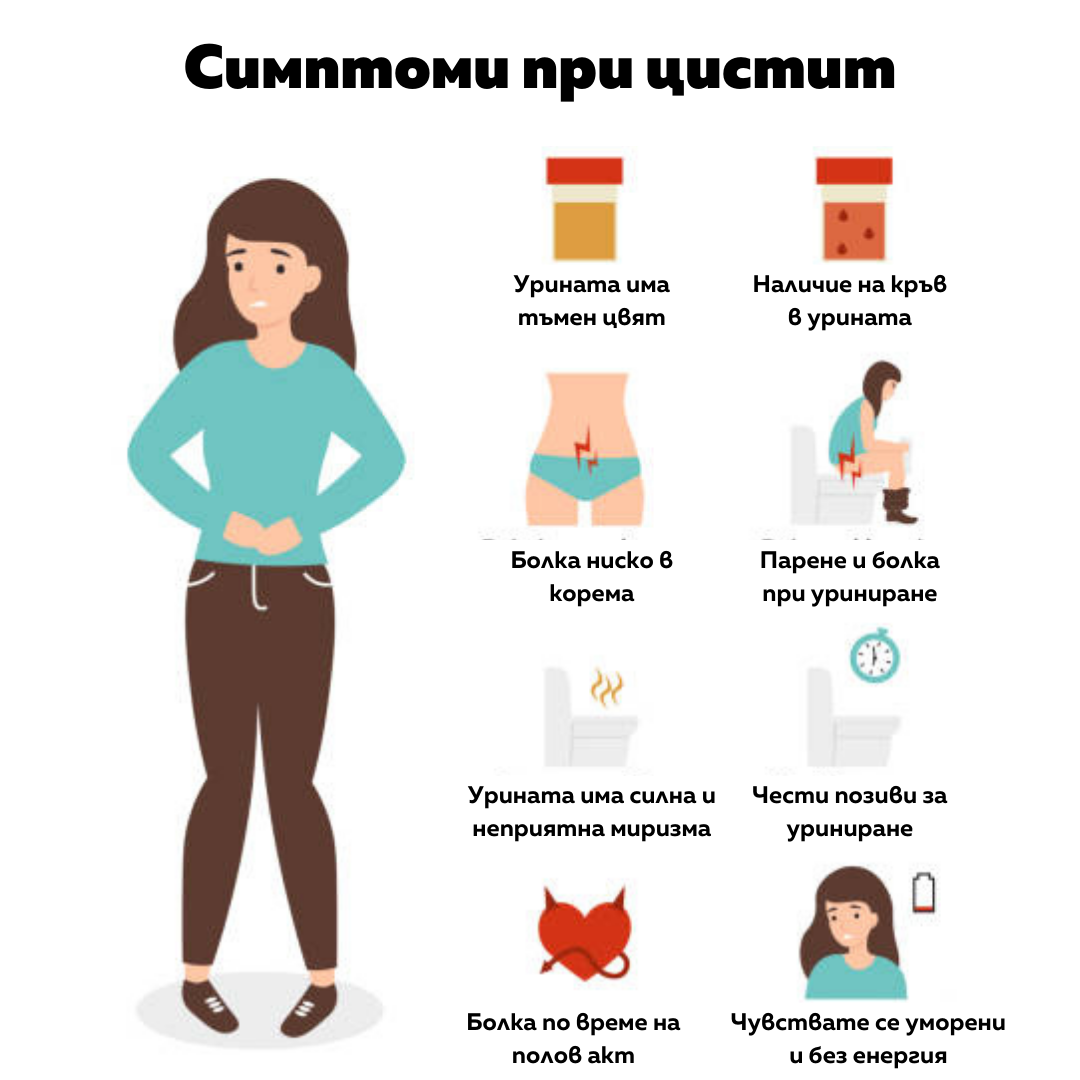 хранителни добавки за цистит, които можете да закупите без рецепта, за да облекчите болката и дискомфорта, които изпитвате. Например: сашета за