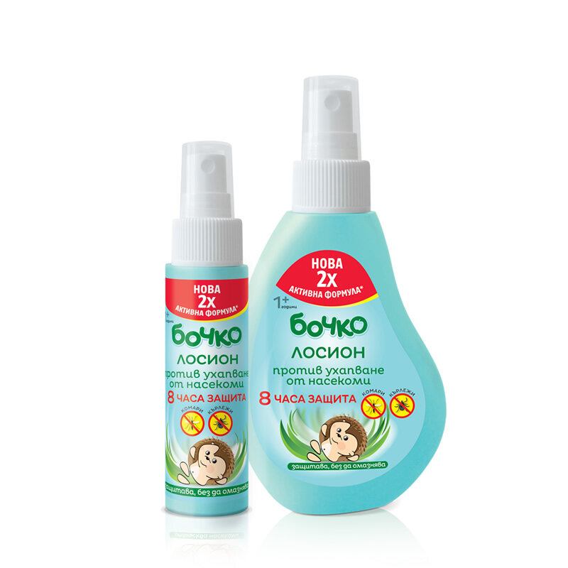 Лосионът против ухапване от насекоми Бочко е биоциден продукт, осигуряващ превенция срещу: комари, кърлежи и пясъчни мухи. Подходящ за употреба от деца над една година.
