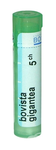 ДОЗИРАНЕ; За облекчаване на интер-менструалния синдром 5 гранули 5 CH oт 10-ия до 15-ия ден от менсруалния цикъл.За облекчаване на предменструален цикъл 5 гранули 5 CH през първите 5 дни от цикъла.За лечение на дисфункционално маточно кървене - 3 гранули Bovista gigantea 4 CH до изчеаване на симптомите.Ако се появи кървене в средата на цикъла - 5 гаранули 9 CH 4 пъти на ден.В дерматологията Boviata gigantea се дозира индивидуално от лекар, особенно за лечение на акне. По принцип при остри състояния се предписват ниски разреждания - 4 CH и 5 CH,а при хронични заболявания - високи разреждания - 15 CH и 30 CH.За лечение на симптомите средните разреждания 7 CH и 9 CH са най-подходящи. Например за лечение на уртикария се използват 5 гранули 5 CH на всвки 10 минути.За лечение на циркулаторни нарушения 3 гранули Bovista gigantea 5 CH се комбинират с 3 гранули Arnika montana 5 CH и 3 гранули Ruta graveolens 5 CH.