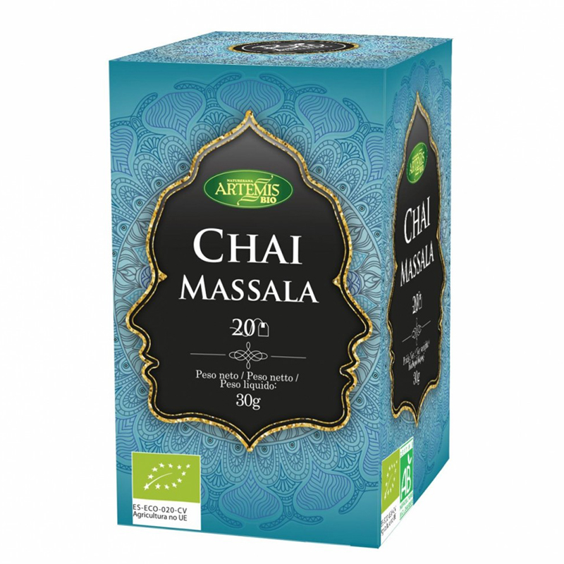 Био чай масала е органичен продукт за приготвяне на топла ободряваща и регулираща редица процеси в човешкия организъм напитка. Продуктът представлява пакет от 20 филтърни пакетчета за директно запазване, като всяко е с грамаж от 30 грама и съдържа ароматна бленда от полезни и подкрепящо равновесието в тялото билки. Използваните растения са характерни за холистичното медицинско течение Аюрведа, известно с балансиращите си природни лечебни комбинации за възстановяване на баланса в организма. Не съдържа кофеин.