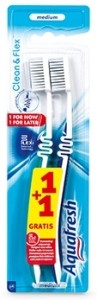 Четката за зъби Aquafresh® Clean & Flex е за цялостно почистване и в същото време щади венците. Уникалната патентована формула Flex Zone защитава венците от нараняване като отнема излишния натиск при четкане. Средно меки влакна и твърди влакна.
