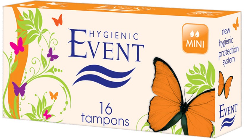 Дамските тампони "Event Mini" са предназначени за девойки и жени със слаба менструация благодарение на малкия си размер. Подходящи са и за такива, които ги употребяват за пръв път. Тампоните на "Event" се предлагат в четири големини с различна степен на абсорбация. Всеки вид отговаря на специфичните нужди на отделната жена и дава гаранция за физически и емоционален комфорт.