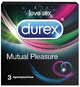Презервативите "Mutual Pleasure" от "Durex" са създадени за едновременен климакс. Уникалната комбинация от релефни ивици и точки и лубрикант "Performa" с 5% бензокаин, ускоряват нейния оргазъм и забавят неговия. Анатомичната им "Easy-On" форма осигурява изключителен комфорт по време на употреба и силни чувствени изживявания.