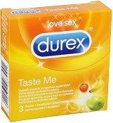 Забавни, цветни и със съблазнителни аромати са презервативите "Taste Me" от "Durex". Анатомичната им "Easy-On" форма прилепва перфектно и създава по-естествено и комфортно усещане за нея и за него.