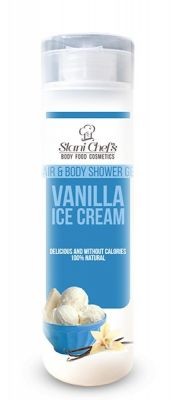 100% натурален душ-гел за коса и тяло - за всяка възраст и за всеки тип кожа и коса. Подходящ за ежедневна употреба. Нежно почиства косата и кожата, без да дразни. Обогатен с масло от жожоба и ванилия, възстановява мекотата, блясъка и жизнеността на косата и предпазва и хидратира кожата.