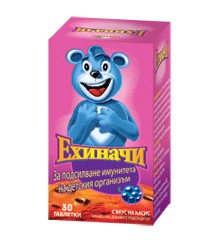 Ехиначи са дъвчащи таблетки с ехинацея под формата на мечета коала с приятен вкус на касис.