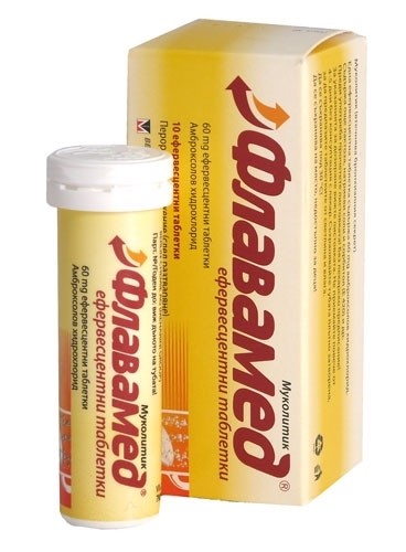 Флавамед ефервесцентни таблетки се използва за лечение на влажна кашлица при заболявания на белия дроб и бронхите.