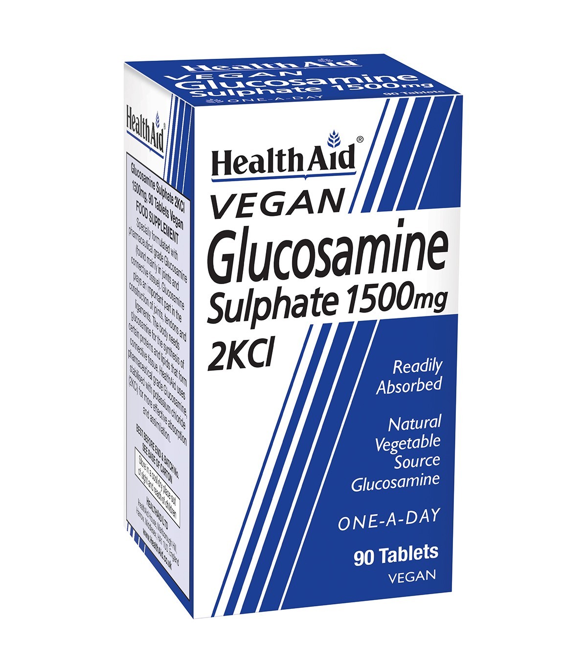 Глюкозаминът присъства най-вече в ставите и съединителната тъкан и е жизненоважен за здравето и възстановяването на хрущялите. Той спомага за поддържане на подвижността на ставите, за гъвкавостта и еластичността на сухожилията, лигаментите и съединителната тъкан. Health Aid използва фармацевтичен клас глюкозамин, стабилизиран с калиев хлорид, което осигурява ефективно абсорбиране и усвояване от организма. Подходящ за вегани.