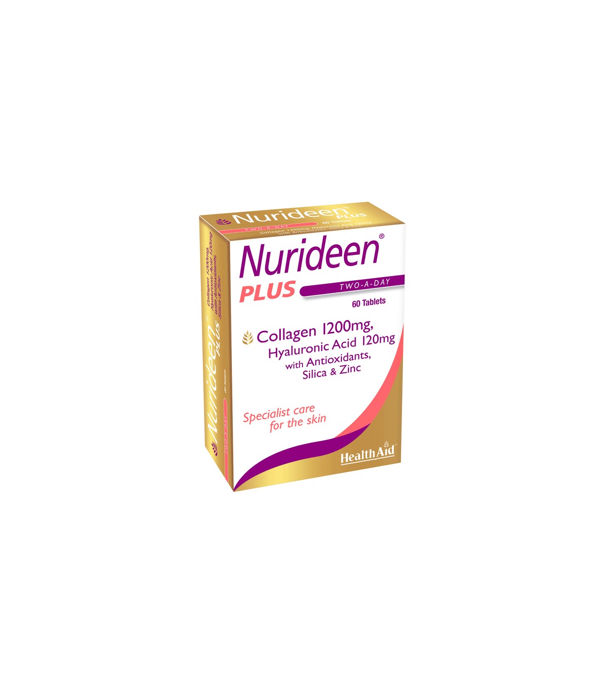 Нуридийн Плюс на Хелт Ейд съдържа хидролизиран колаген, силициев диоксид, хиалуронова киселина, бета-каротин, витамин С и Е и цинк, които осигуряват оптимална подкрепа за здрава, сияеща кожа и минимизират общите признаци на стареене.