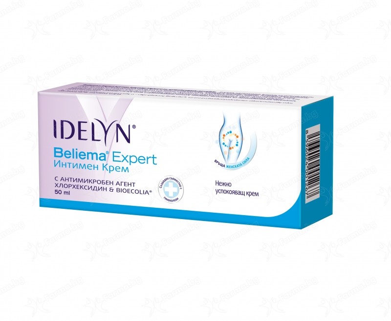 Иделин Белиема интимен крем е нежно успокояващ крем с антимикробния агент хлорхексидин, който спира развитието на бактерии и гъбички; с кисело pH. Продуктът е предназначен за приложение върху кожата, за ежедневна интимна хигиена и за облекчаване на неприятни усещания като сърбеж, възпаление, неприятен мириз в резултат на инфекции или от ежедневната дейност и изпотяване.
