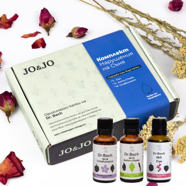 Съдържа 3 вида капки на д-р Бах – „Сън“, „Анти стрес“ и „Стабилност“