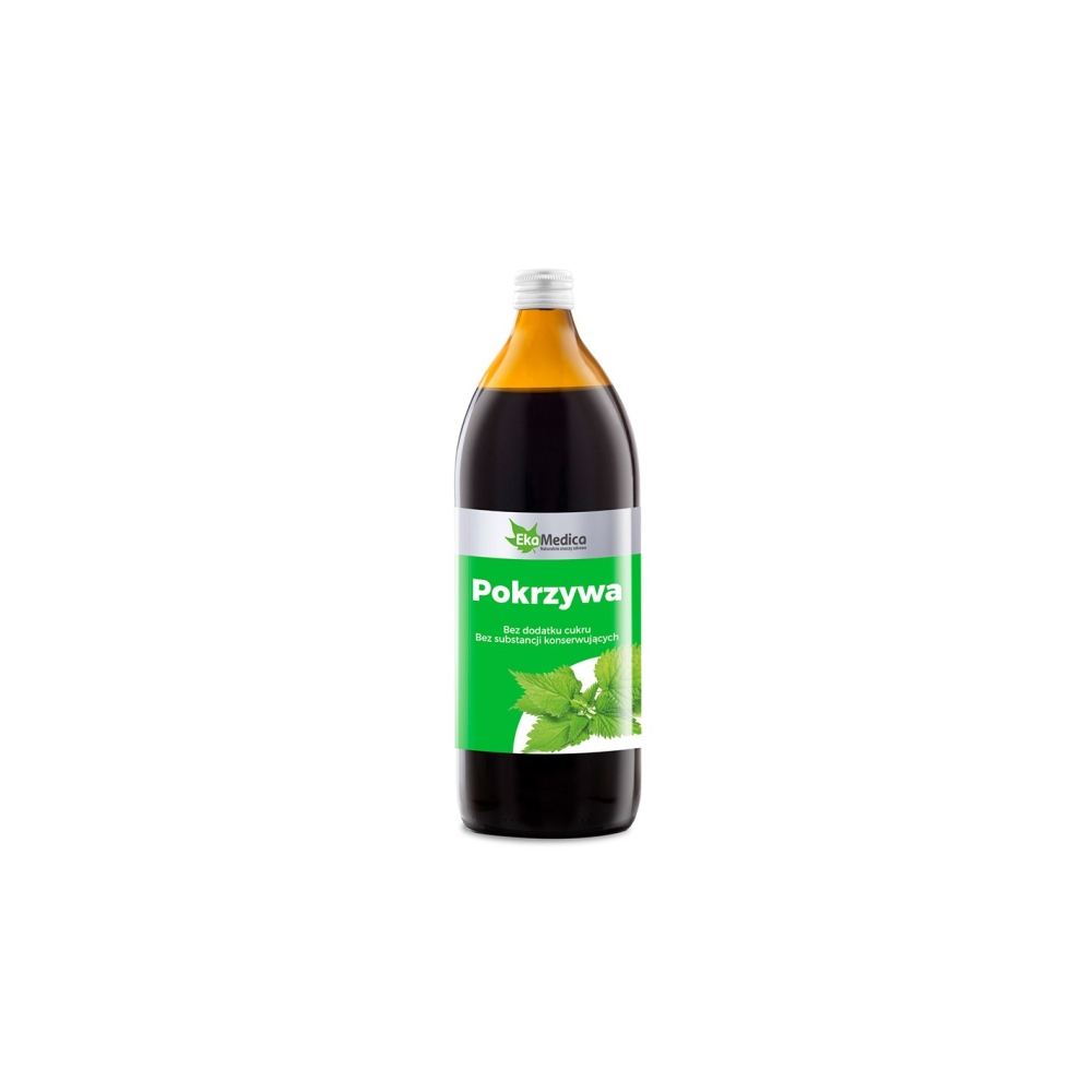 POKRZYWA 1 L (Коприва) представлява течна хранителна добавка от екстракт от листа на коприва. Продуктът е пастьоризиран. Копривата е едногодишно растение, разпространено почти по цялото земно кълбо. Има жилещо-парещи власинки по листата и стъблата, които причиняват болезнено дразнене на кожата. Сокът от коприва е най-разпространената хранителна форма, в която се преработва това растение. Листата на копривата съдържат значителни количества от хлорофил, каротин, фитонциди, ксантофили, витамин С, танини, гликокинини и магнезий, желязо, фосфор и силиций, витамини A, C, К, В2 и пантотенова киселина, антиоксиданти. Сокът от коприва не съдържа консерванти, притежава само естествено срещащи се в растението захари. Поради многото си полезни свойства сокът от коприва поддържа организма в добра здравословна форма. Оказва благоприятно влияние върху проблеми с храносмилането и стимулира апетита. Витамините и антиоксидантите в сока от коприва укрепват имунната система и помагат на тялото да се бори с инфекции и редица други заболявания. Подобрява състоянието на кожата, косата и ноктите, като им придава добър външен вид.