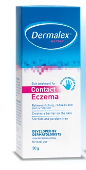 Dermalex Repair контактна екзема крем е предназначен за възрастни и деца над 6 годишна възраст страдащи от леки или умерени симптоми на контактен дерматит. Продуктът е достъпна епидермалната бариера, която възстановява раздразнената кожа в следствие на контактна екзема. Той активира собствен механизъм за възстановяване на кожата и създава бариера върху кожата срещу действието на бактериални токсини и супер антигени. Той овлажнява и подхранва липсващите компоненти от природен серамид, типични за кожа с контактна екзема.