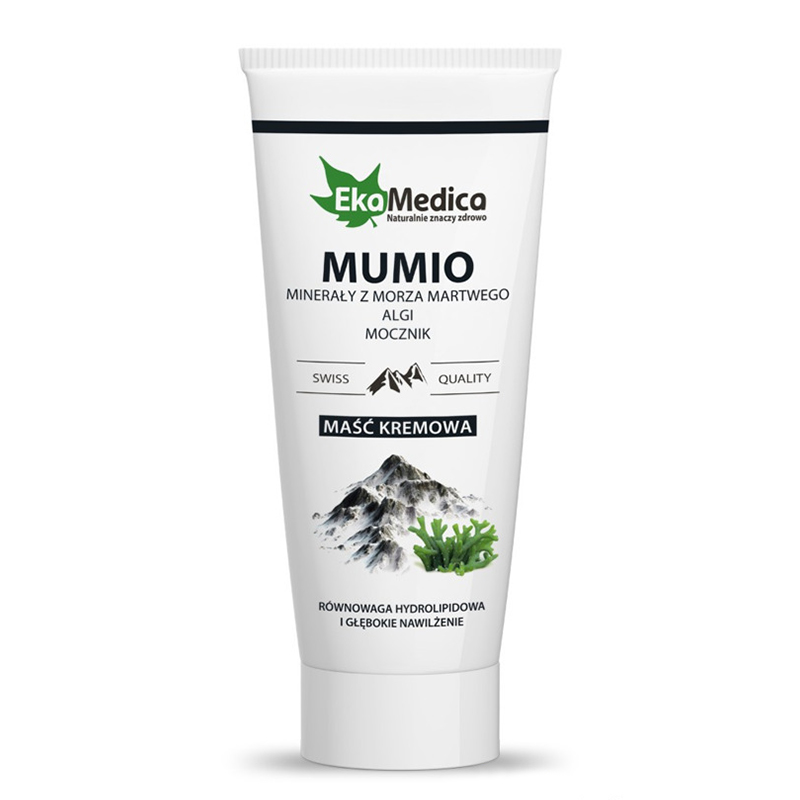 Хидратираща маз Mumio на Ekamedica е козметично средство, предназначено за грижата за суха и много суха кожа. Мощното му овлажняващо действие се дължи на формулата с Мумио, минерали от Мъртво море, водорасли и урея. Продуктът попълва нуждата от влага и насърчава задържането ѝ, премахва напрежението, облекчава сърбежа и възстановява усещането за комфорт.