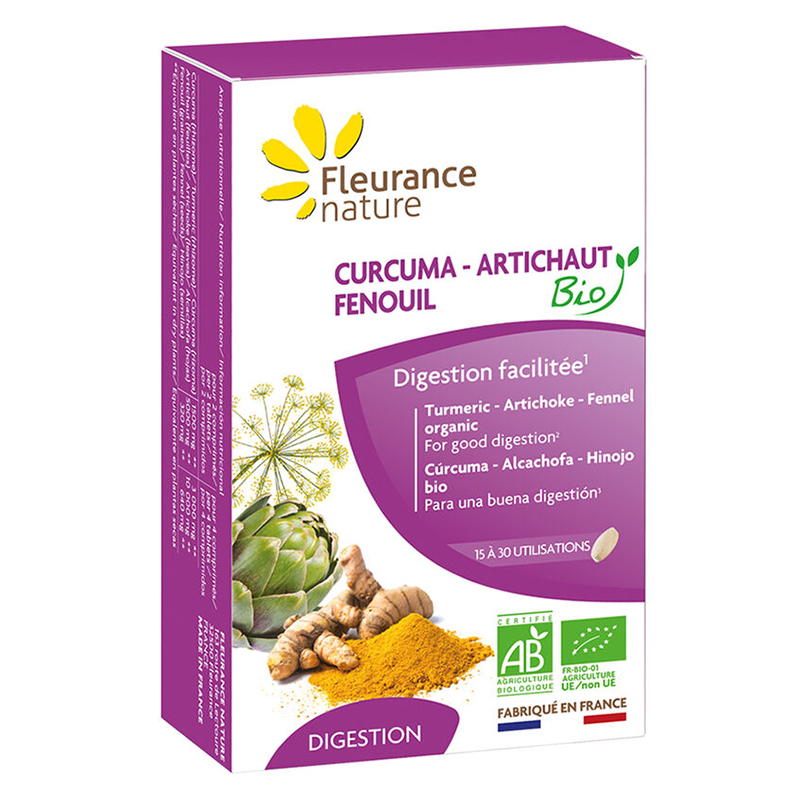 Тази висококачествена хранителна добавка от френската компания Fleurance Nature съчетава три биоактивни съставки – куркума, артишок и копър – в специална формула за поддържане на здравето на храносмилателната система, черния дроб и жлъчката.
