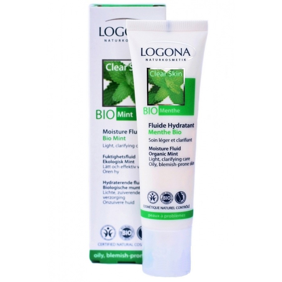 Logona Овлажняващ флуид Био мента 30 мл.Флуид, който едновременно хидратира проблемната кожа и се бори с пъпките, лъскавината и несъвършенствата.