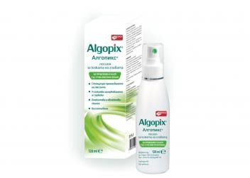 Лосион за кожата на главата Алгопикс е козметично средство, предназначено за ежедневно третиране на проблемната кожа на скалпа при състояния, придружени с интензивно лющене, зачервяване и сърбеж. Благодарение на внимателно подбраната комбинация от активните съставки – патентованият комплекс Нио-Сенсил®, салицилова киселина, урея, зелени микроводорасли и антимикотичната съставка пироктон оламин - лосионът има комплексно действие върху засегнатата кожа. Повлиява възпалението, успокоява зачервяването и сърбежа, стимулира оздравителните процеси на кожата и нейната хидратация. Редуцира размножаването на гъбичната флора. При състояния на интензивно лющене на скалпа /пърхот, себореен дерматит и пр./, улеснява отстраняването на полепналите сквами и предотвратява повторното им появяване.