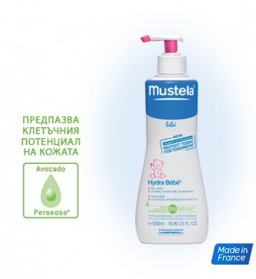 Специално формулиран за използване от деня на раждането,* Mustela Hydra Bébé® Лосион за тяло представлява ежедневна грижа за кожата на бебето: