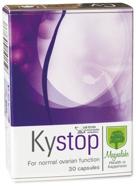 КИСТОП благоприятно повлиява симптомите на поликистозни яйчници като инфертилитет, косопад, акне, затлъстяване. КИСТОП се препоръчва при нередовен менструален цикъл, като благоприятства нормализирането на овулацията и нивата на хормоните.