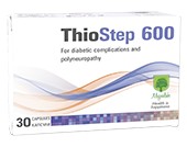 ТИОСТЕП се препоръчва за подобряване кръвоснабдяването на крайниците и състоянието на диабетно стъпало. ТИОСТЕП повлиява благоприятно поддържането на нормална кръвна захар, нервната проводимост, като забавя процесите на стареене и ускорява регенеративните процеси съответно.