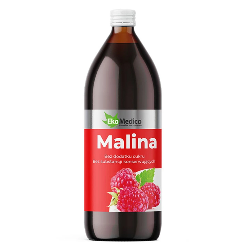 Malina / Малина (сок), 1000 ml е хранителна добавка на EkaMedica, Полша. Продуктът подпомага нормалното състояние на костите, кожата, кръвоносните съдове и имунната система. Притежава антиоксидантни свойства.