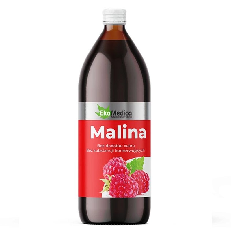 Malina / Малина (сок), 500 ml е хранителна добавка на EkaMedica, Полша. Продуктът подпомага нормалното състояние на костите, кожата, кръвоносните съдове и имунната система. Притежава антиоксидантни свойства.