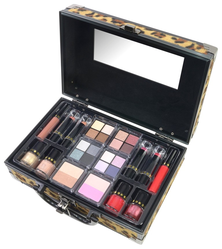 Комплектът е представен в стилен куфар с дизайн течение #Boss babe, с дръжка, секретно закопчаване и с огледало. Идеален както за носене комплекта при пътуване, така и за съхраняване на гримове, бижута, аксесоари.