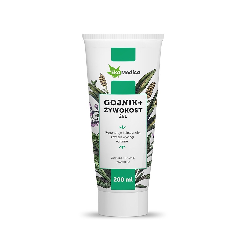 Zel Gojnik + Żywokost 200 ml представлява гел с екстракти от корен на черен оман и пирински чай с добавен алантоин. Гелът е изключително ефективен. С релаксиращ и успокояващ ефект. Препоръчва се особено след физическо натоварване за по-бърза регенерация на уморените мускули. Гелът е дерматологично тестван. В природата алантоинът може да се намери в големи количества в корена на черния оман. Алантоинът има дезинфектиращ и почистващ ефект, ускорява зарастването на раните, стимулира клетъчното образуване и по този начин възстановява увредената тъкан. Успокоява кожата, особено груба кожа и е полезен в случай на слънчево изгаряне. Екстрактите от корен на черен оман и пирински чай оказват успокояващо действие върху мускулите след тежка работа или интензивен спорт.