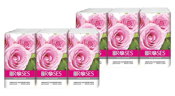 Трипластови сухи ароматизирани кърпички с нежен розов аромат и фина текстура.