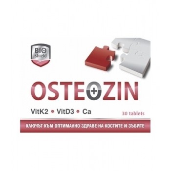 Osteozin е хранителна добавка, съдържаща мощен комплекс от витамин К2, в комбинация с калций и витамин D3, които спомагат за поддържането на здрави кости и зъби.