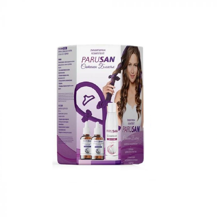 Парусан комплект, цялостна грижа за здрава и жизнена коса, осигурява бърз растеж на косата, а с допълнителния аксесоар може да си направите уникални къдрици.