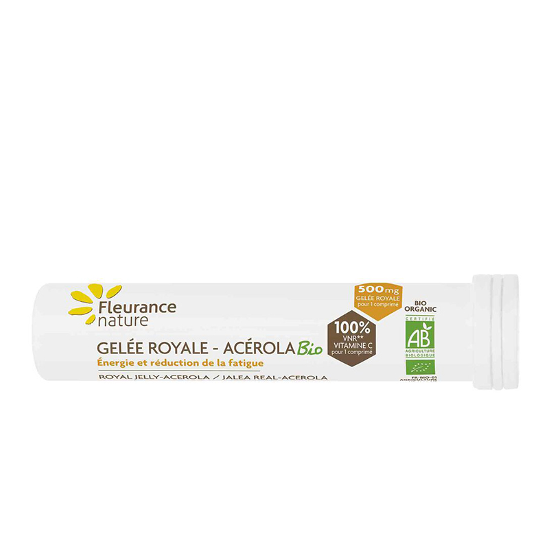 Royal jelly-acerola, на френската компания Fleurance Nature, комбинира 2 съставки от органичен произход: лиофилизирано пчелно млечице и ацерола. Под формата на вкусни дъвчащи таблетки, които осигуряват необходимата здравословна подкрепа във всеки един момент.