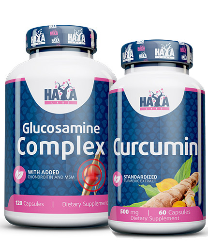 Комплект Стави подпомага здравето на ставите, костите и хрущялите - съдържа два продукта на марката Haya Labs - Glucosamine Complex и Curcumin/ Tumeric Extract.