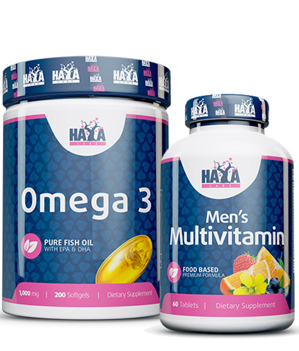 Комплект Мъжко Здраве подпомага мъжкото здраве, благодарение на два супер ефективни продукта на марката Haya Labs - Omega 3 и Food Based Men's Multi.