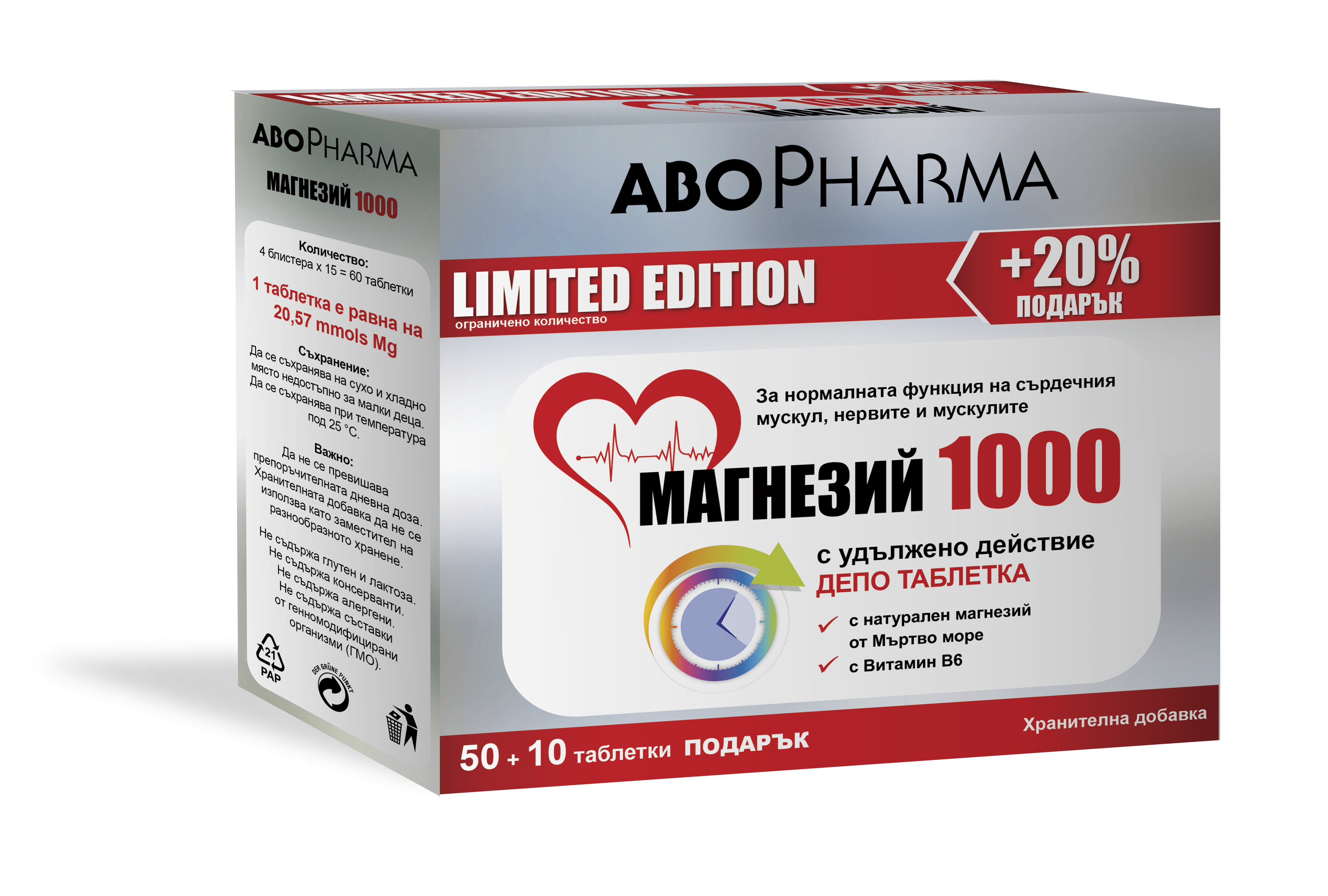 Магнезий 1000 е натурален магнезий от мъртво море, който съдържа специално разработена формула като ДЕПО таблетка, с две фази на действие и витамин В6.