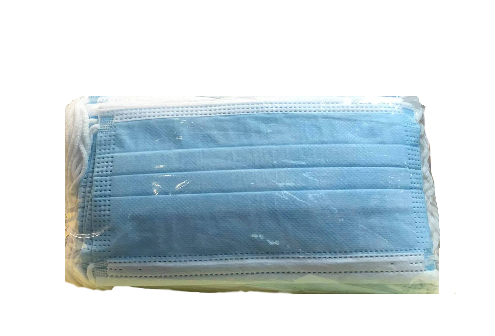 Еднократна трислойна предпазна маска с ластик.