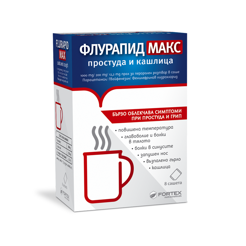 ФЛУРАПИД МАКС простуда и кашлица се препоръчва само ако всички симптоми (болка и/или повишена температура, запушване на носа и гръдна кашлица) са налични.