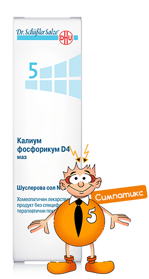 Шуслерова сол №5 подпомага правилното разпределение на калия в тялото, което е от ключово значение за работата на нервите и на мускулите. При наличие на неправилно разпределение на калиевите и фосфатните йони се стига до слабост, болки и дори до парализа на мускулите или нервите. Солта стабилизира нервите, психиката, подкрепя духа и тялото.
