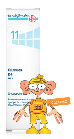 Шуслерова сол №11 е едно от най-старите лечебни средства, като силициев диоксид се споменава още в папиросите на старите египтяни. Тя е основна съставна част на съединителната тъкан, а колкото по-високо е съдържанието на солта, толкова по-млада е тъканта. Неслучайно силицеята е считана за солта на младостта, на младата кожа. Препоръчва се на хора, които страдат от разширени вени, защото стабилизира и прави еластични съдовите стени. Също така подпомага растежа на косата и ноктите. Успешно се справя с цъфтяща коса, косопад и цепещи се нокти. Включва се в комбинациите от соли при слабост или изменения с годините на хрущялите (колена, гръбначен стълб и др.)