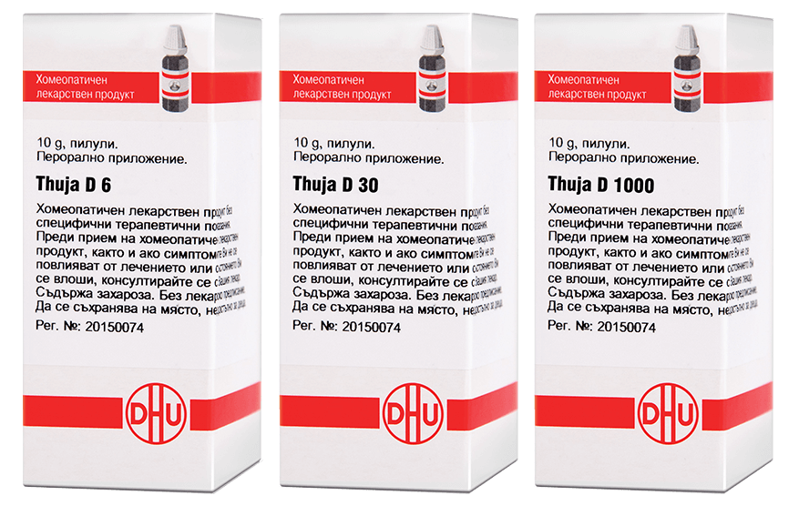 ⭕ Дозировка: Туя D6 – 2 пъти дневно по 1 доза (10 глобули) за необходимия период от време.
