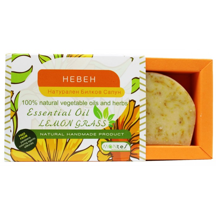 Мек чист органичен сапун от растителни масла за цялостна грижа за кожата. Обогатен с цветчета невен и чисто етерично месло от лимонова трева.Кремаво-фината пяна оставя приятно, меко усещане за кожата и нежен, естествен аромат.