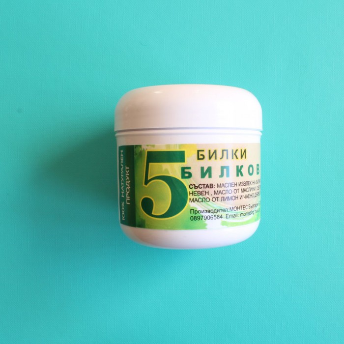 Крема с 5 билки е за приложение върху кожата. Нанася се с мазане 2-3 пъти на ден върху поразеното място. Препоръчва се процедурата да продължи до пълното зарастване на кожата. Крема попива бързо . Не оставя следи.