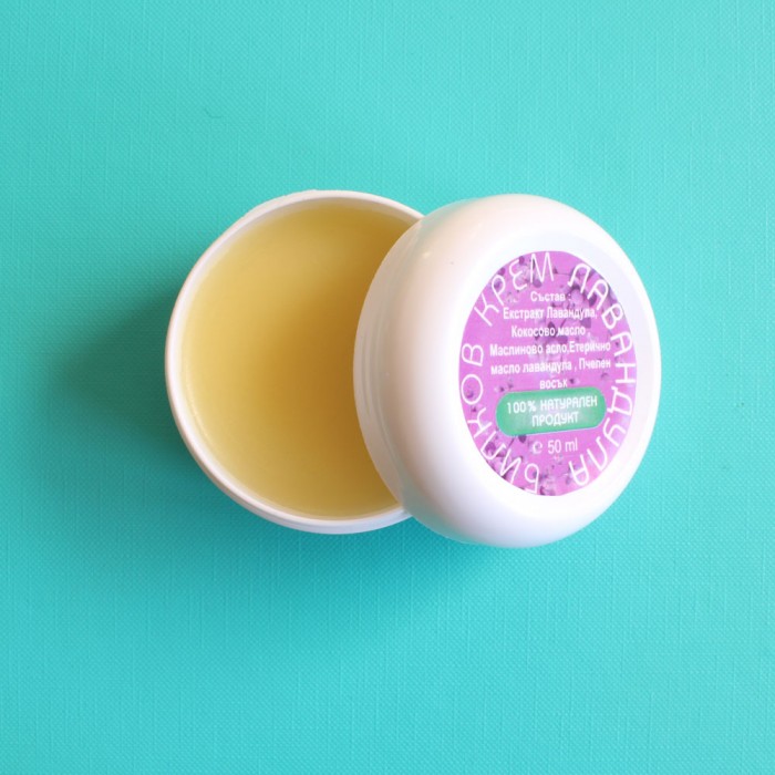 Натуралния крем с лавандула стимулира клетъчното регенириране , забавя процесите на стареене на кожата. Масления извлек от лавандулата има естествено антисептично и регулиращо действие. Успокоява акне и други възпалителни кожни проблеми.Крема с лавандула подхранва и хидратира кожата .
